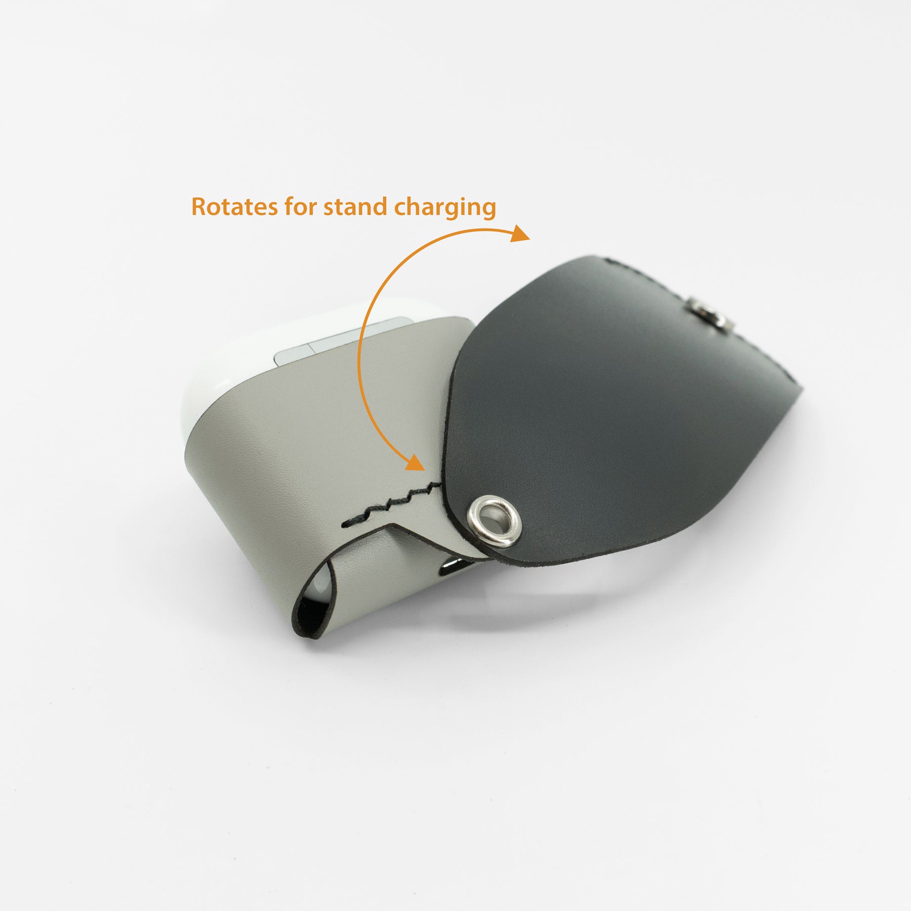 Rotating lid design enables easy charging on stands or docks.